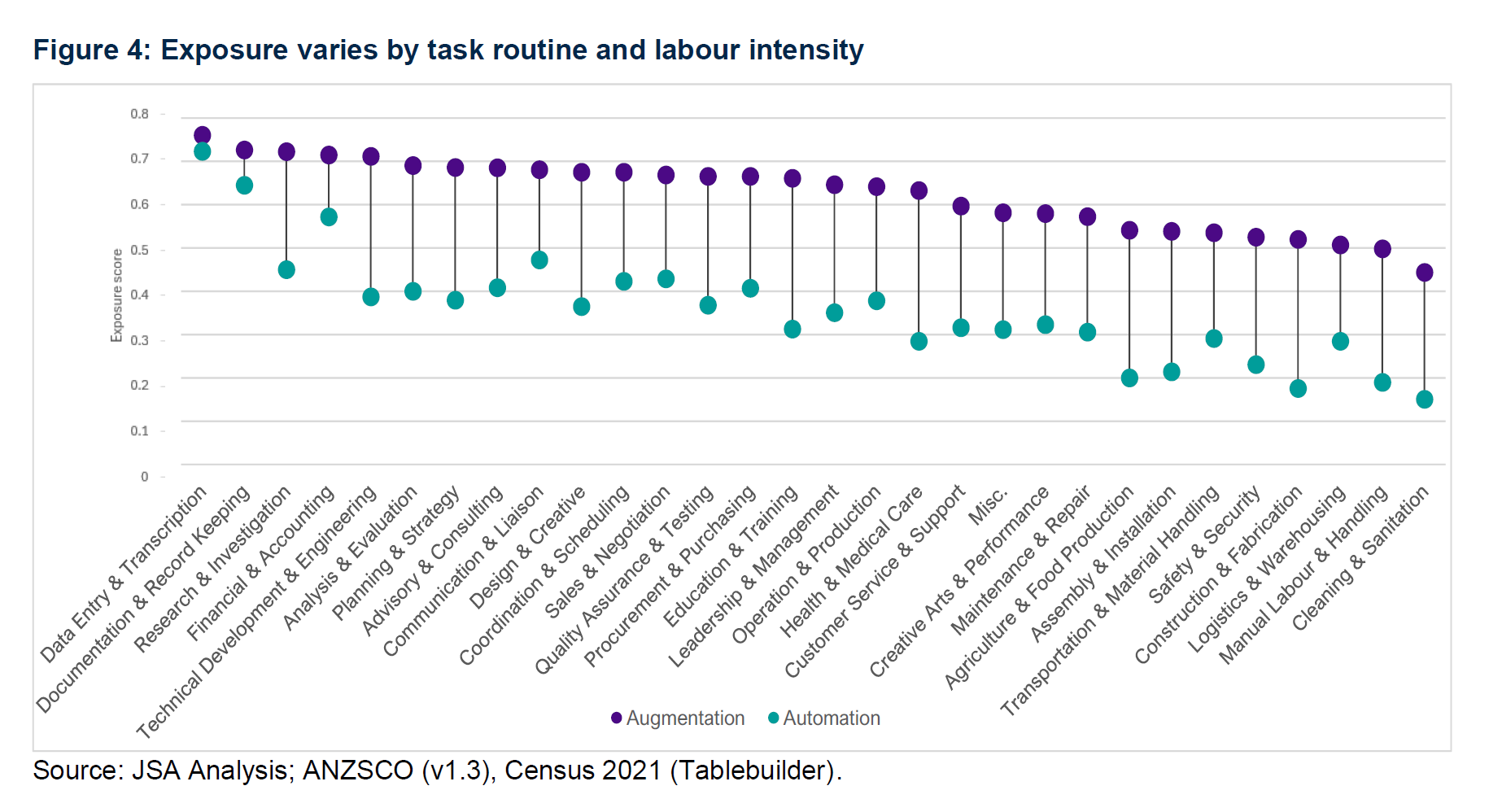 The data tells a clear story: only 21% of the Australian workforce is in roles with medium-to-high exposure to automation. In stark contrast, a massive 87% of the workforce is in roles with medium-to-high potential to be augmented by AI tools. The future, therefore, is far less about being replaced and overwhelmingly more about learning to work with technology to become more effective.